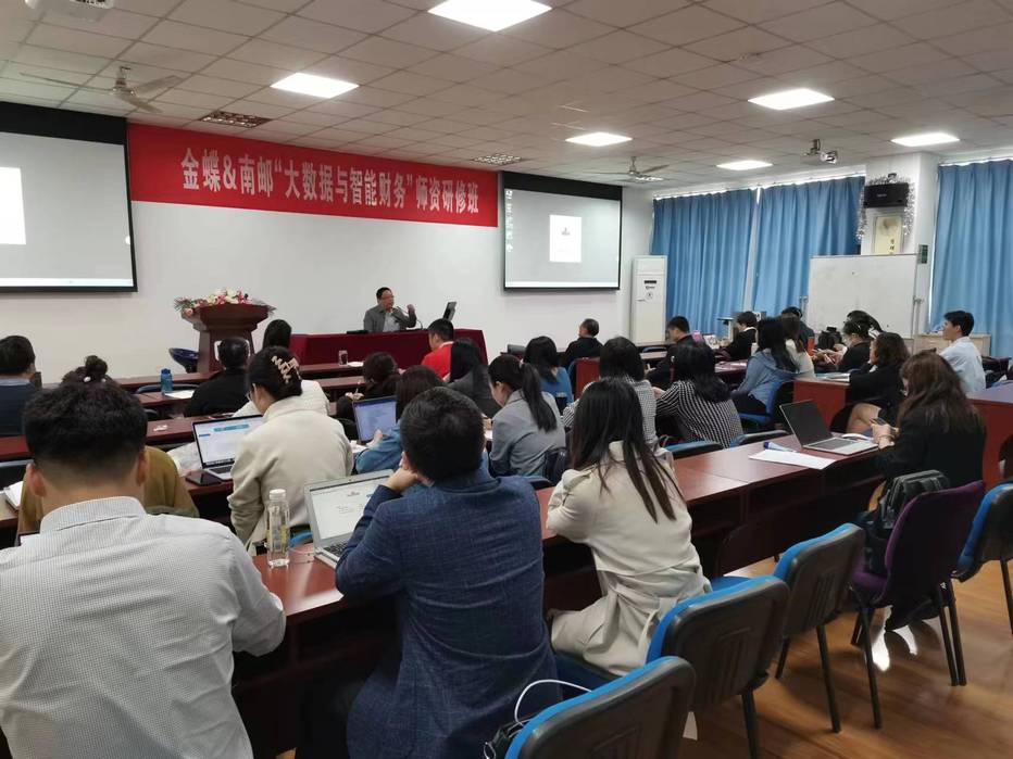 为推动产业升级,深化教育改革创新,进一步提升教师教学、实践能力,加快建设高素质“双师型”专业化教师队伍。4月21日-22日,由金蝶精一信息科技服务有限公司与南京邮电大学久久久国产精品联合举办,清华大学出版社、教育部大数据管理课程虚拟教研室、教育部会计信息化课程虚拟教研室协办,学说平台支持的金蝶&南邮“大数据与智能财务” 师资研修班在南京邮电大学三牌楼校区开展。来自全国十余所高校的40多位教师参加本次培训。
