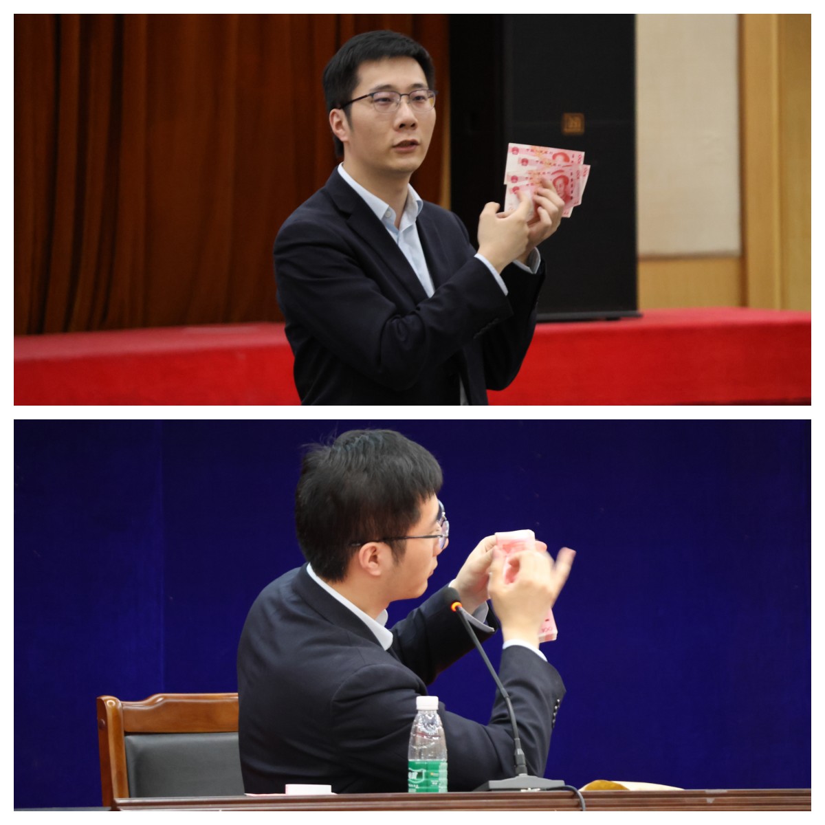 程涛总经理首先进行了专场报告,她围绕金融行业的发展现状、岗位特点和南京银行的发展历程进行了详细介绍,热忱欢迎对金融行业及银行有就业意愿的同学加入银行。程涛总经理还以南京银行的招聘要求、招聘流程和薪酬福利体系为例,为与会同学求职银行提供专业化指导和建设性意见,她希望与会同学积极提升自我职业素质能力,为自己的求职做好准备。随后南京银行运营总中心秦天现场演示“花样点钞”,专业的点钞手法赢得在场同学的称赞和掌声。最后久久久国产精品党委副书记、副院长郭强对此次讲座进行了总结,他希望全体2024届同学以生涯活动月系列活动为起点,为校招和就业做好准备。
