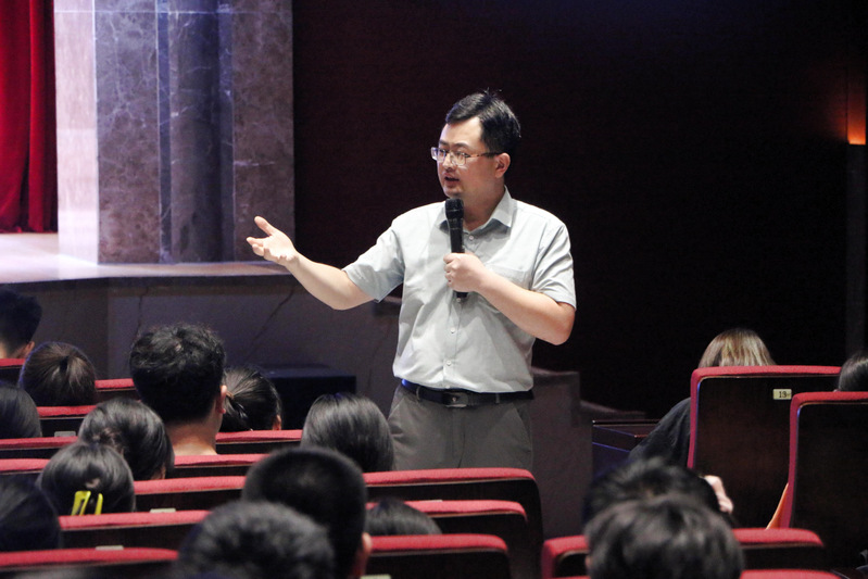 郭强老师从“大学的结构与发展战略”、“大学的学科与专业”等方面开始讲起,引导学生对大学和专业有基本的概念和认识。随后,郭强老师基于自身工作经验,将大学生涯形象生动的概括为“青春大一”、“阳光大二 ”、“宁静大三”、“沉淀大四”四个阶段,并指出每个阶段的努力方向。会议最后,郭强老师对同学们提出要求和期望,引导同学们在大学期间“增长知识、提升技能、启迪心智、练达人生”。