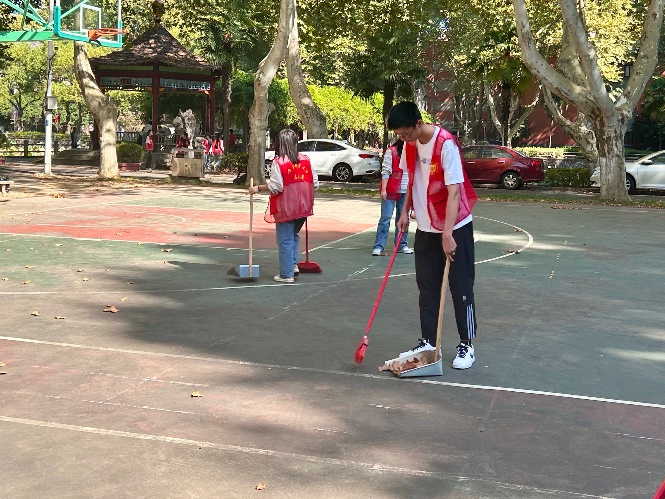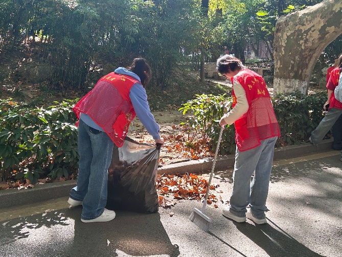 秋风凉爽,落叶飒飒。志愿者们拿着各自卫生工具,井然有序地在眼镜湖周边、两个篮球场周边、行政南楼周围、假山周围等区域进行了卫生清扫活动。满是落叶的校园在他们的打扫下重回干净,秋风带来的凌乱也因他们归于整洁。积极劳动的“红马甲”们,用他们的热情和干劲为校园增添一抹色彩,深秋的南邮也因他们添了一丝温度。