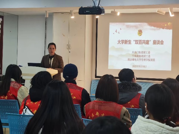 开一场座谈交流会。在座谈交流会环节,我院学子在宁海路街道团工委负责人唐宇的带领下,共同交流个人体会和思想认识,在增进了解、加深友谊的基础上,提升对南京的城市认同感、参与感和归属感。后续,我院也将以座谈会上提出的共性问题和需求为导向,进一步优化与结对社区的“共建项目清单”,让更多学子走进社区,参与社会实践。