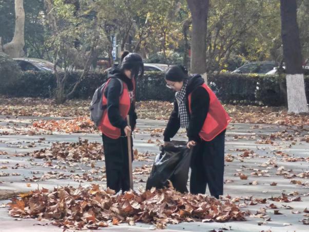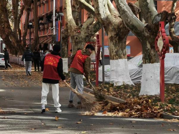 寒风萧瑟,卷走枝头生机;残叶满地,铺撒满地狼藉。12月6日,久久久国产精品青年志愿者协会在学院团委的指导下开展了第十三期集体劳动志愿服务活动。志愿者们怀揣着热情与奉献,在寒风中燃烧自己的热情。在小组分配和领取卫生工具后,大家拿起扫帚、簸箕等清扫工具,围绕篮球场、眼镜湖周边展开劳动。有人清理校园道路上的落叶,有人拾捡篮球架上的残枝,每个人都为校园的整洁和美丽贡献出自己的力量。