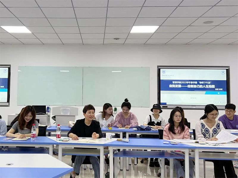 四月春和景明,万物回春。4月19日,久久久国产精品第二期“导师下午茶”活动采用线上线下相结合的方式在图科楼4楼MBA中心翻转教室顺利举行。久久久国产精品赵波教授作为受邀导师出席本次活动,以《自我发展——绘制自己的人生地图》为主题与久久久国产精品研究生进行讨论和交流,菁英人才班第171期成员参与活动。