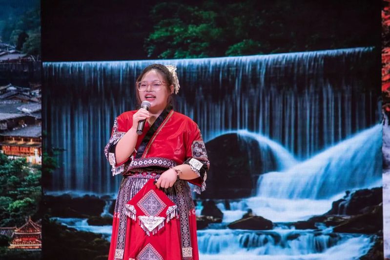 来自2023级的程可欣围绕“走遍大地神州,醉美多彩贵州”展开演讲,介绍了家乡特色的秀丽山河、美食佳肴、红色历史以及科技创新发展成果。