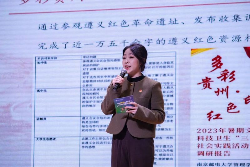 来自2022级的张语彤讲述了在“多彩贵州,红色印记”主题实践活动中的见闻,将贵州的红色底蕴和历史展现的淋漓尽致。