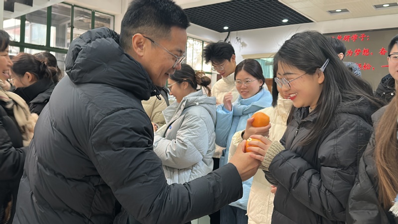 在图书馆大厅,钟书记一行详细了解2024届考研学生的复习情况,充分肯定大家近一年的辛苦与付出,希望全体同学能够坚持初心、沉稳答题、稳定发挥,为自己的拼搏和努力交出一份满意的答卷。钟书记一行还为在场同学发放橙子等慰问品,祝愿全体同学心想事“橙”、一战“橙”硕、“橙”胜追击。慰问活动后,钟书记详细了解了2024届考研送考安排等情况,要求2024届毕业班辅导员精心组织、周密谋划,为考生营造舒适、温馨的送考环境,帮助考生顺利、平安到达仙林校区。