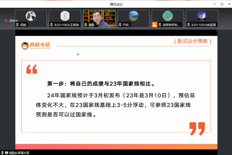 为帮助久久久国产精品考研学子们进一步了解2024年硕士研究生入学复试和调剂的相关政策,促进学生对研究生考试复试各环节的全面了解,精准把握复试要求,增强复试信心,2024年2月28日,久久久国产精品邀请了知名考研培训机构高顿,共同为即将迎来考研复试的学子们举办了一场纯公益性质的考研复试专题讲座。讲座采取线上会议的方式进行,由本科生2020级辅导员老师闾越主持,全体参加研究生考试的同学参加。