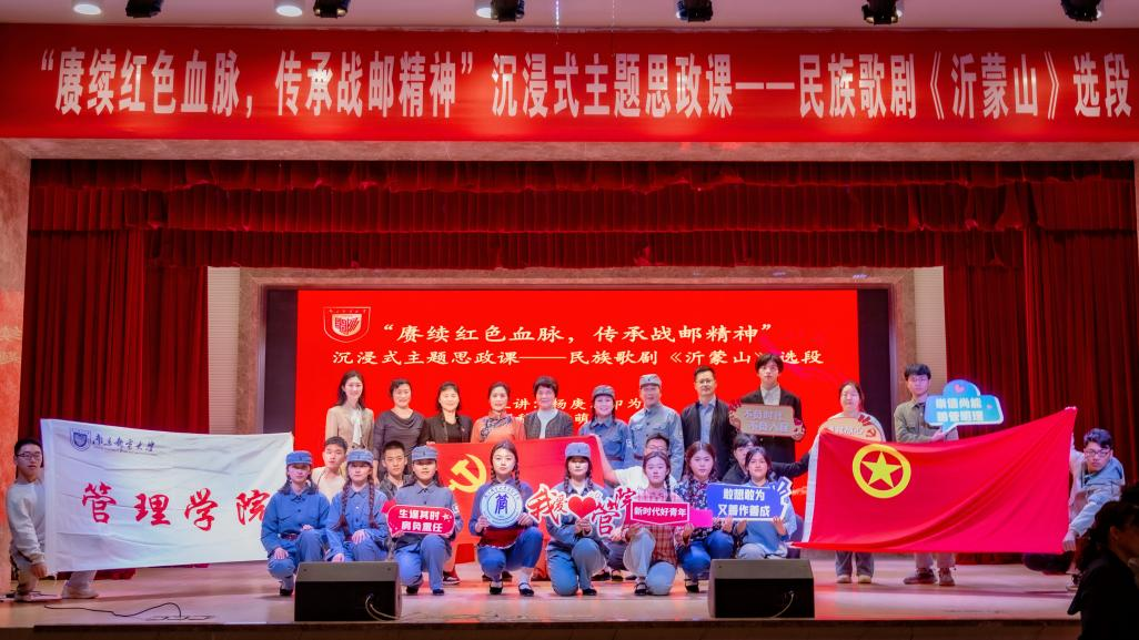 “沂蒙莒南东甘霖村是我们学校的发源地,所以我们选择《沂蒙山》这部歌剧,”退休艺术团印为民老师在采访中提到,“歌剧讲述了沂蒙山区人民在抗日战争时期,生死与共、水乳交融,为革命事业团结战斗、不怕牺牲的感人事迹。我们通过歌剧演唱,引导同学们欣赏高雅民族歌剧艺术的同时,让同学对革命老区那段抗战历史有更深刻、更形象的认识,对沂蒙精神有更加深刻的理解,对‘忠贞不渝、使命必达’的战邮精神进一步歌颂,激发青年学生的爱国情、报国志、强国梦。”