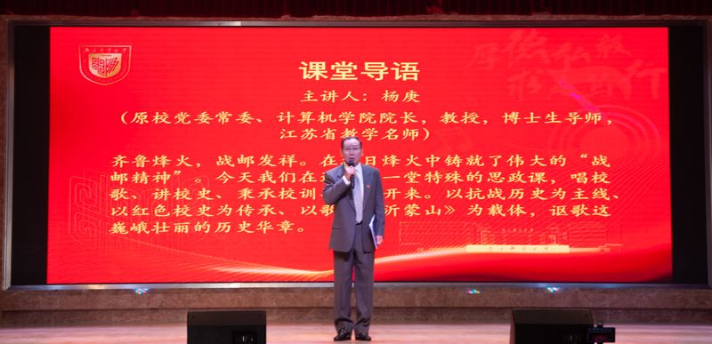 “齐鲁烽火,战邮发祥。金陵春潮,谱写华章。”众师生齐唱南京邮电大学校歌《信达天下》拉开思政课序幕。南京邮电大学原党委常委、计算机学院院长杨庚老师主讲,特邀南京邮电大学原党委书记兼校长谢玲老师讲述发源地的历史。“南京邮电大学发源于山东省莒南县东甘霖村的战邮干训班,建校60周年前夕,我们通过实地走访与当年老一辈的住户联系,了解到当年战邮干训班学员们的故事。当时不仅生活条件十分艰苦,学习条件也很困难。战士们与老百姓同吃同住,同甘共苦,一边学习,一边战斗。树高千里,不忘其根;鹏行万里,不忘其魂。我们永远不会忘记战邮精神,永远不会忘记这一段非凡的历史!”老领导谢玲老师铿锵坚定的话语感染着现场的每一位师生。