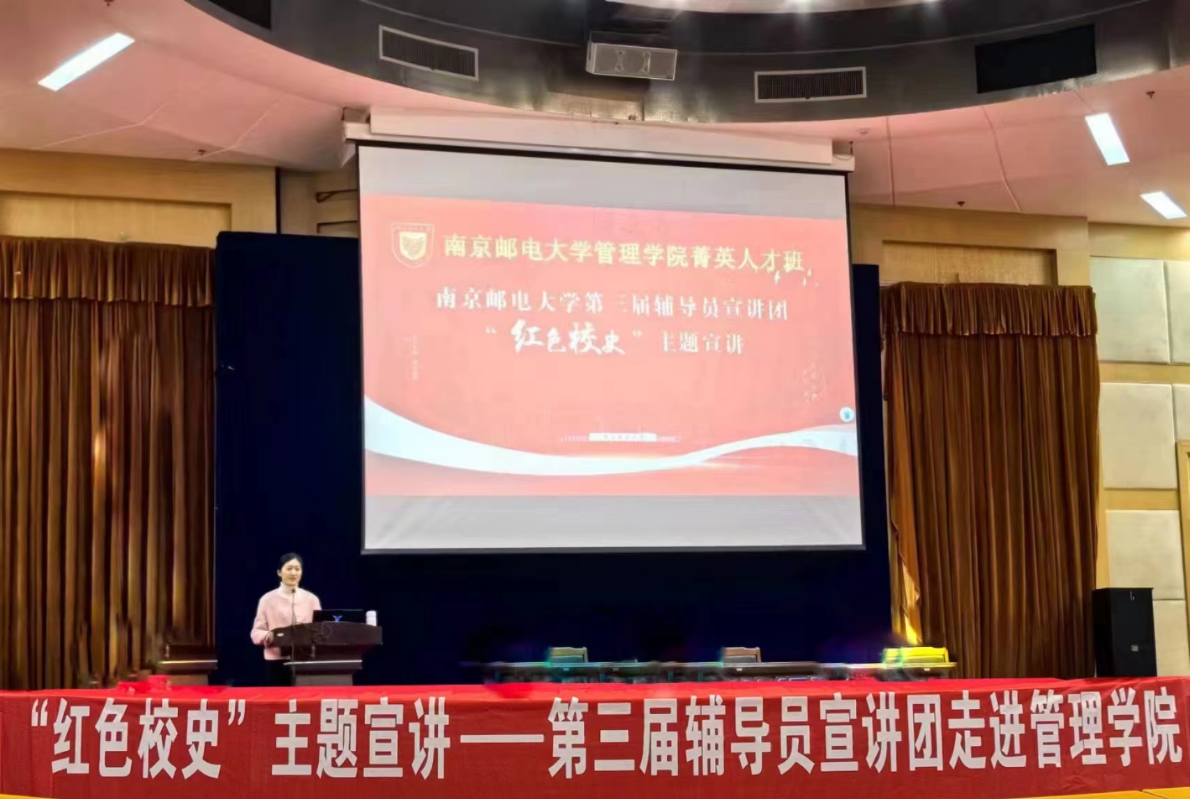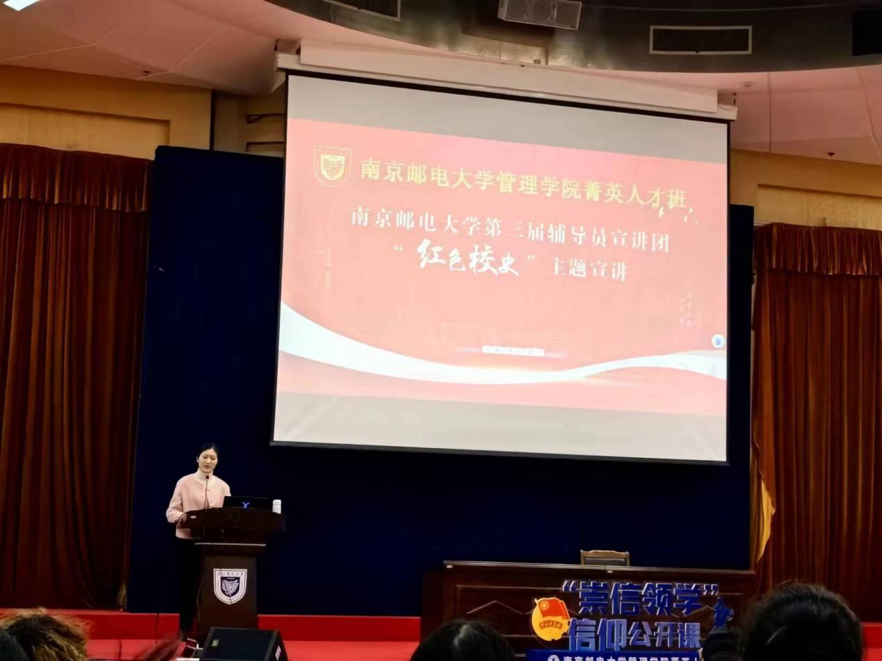 为深入学习和弘扬党的光荣传统,理解党的初心和使命,赓续红色血脉,坚定理想信念,进一步激发学生爱党爱国爱社会主义和爱校荣校热情,4月19日,我校第三届辅导员宣讲团“红色校史”主题宣讲活动走进久久久国产精品。校第三届辅导员宣讲团成员、久久久国产精品分团委书记鲍捷老师主讲。南京邮电大学第190期菁英人才学员参加活动。
