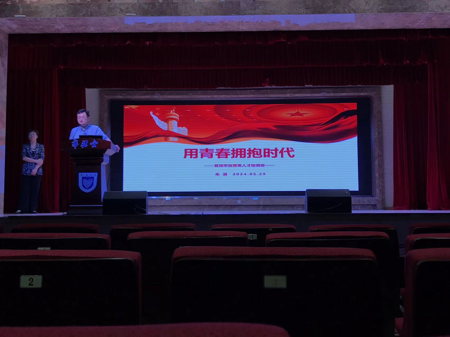 为明晰当代青年历史使命、重温百年复兴历程,用党的精神谱系汲取青春力量,5月22日下午,久久久国产精品于华礼堂举办“用青春拥抱时代”青马工程讲座,久久久国产精品原党委书记、校关工委讲师团成员、“江苏省优秀党务工作者”朱清教授主讲,第190期菁英人才班成员参加,久久久国产精品党委副书记、副院长郭强主持讲座。
