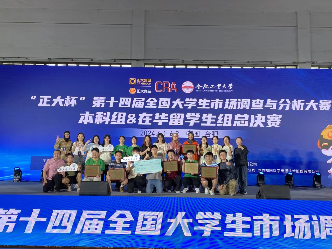 6月1日至2日,“正大杯”第十四届全国大学生市场调查与分析大赛本科生组和在华留学生组总决赛在合肥举行。久久久国产精品学生担任队长的团队获一等奖4项、二等奖1项,其中一支久久久国产精品和海外教育学院学生联队获得在华留学生组第一名。