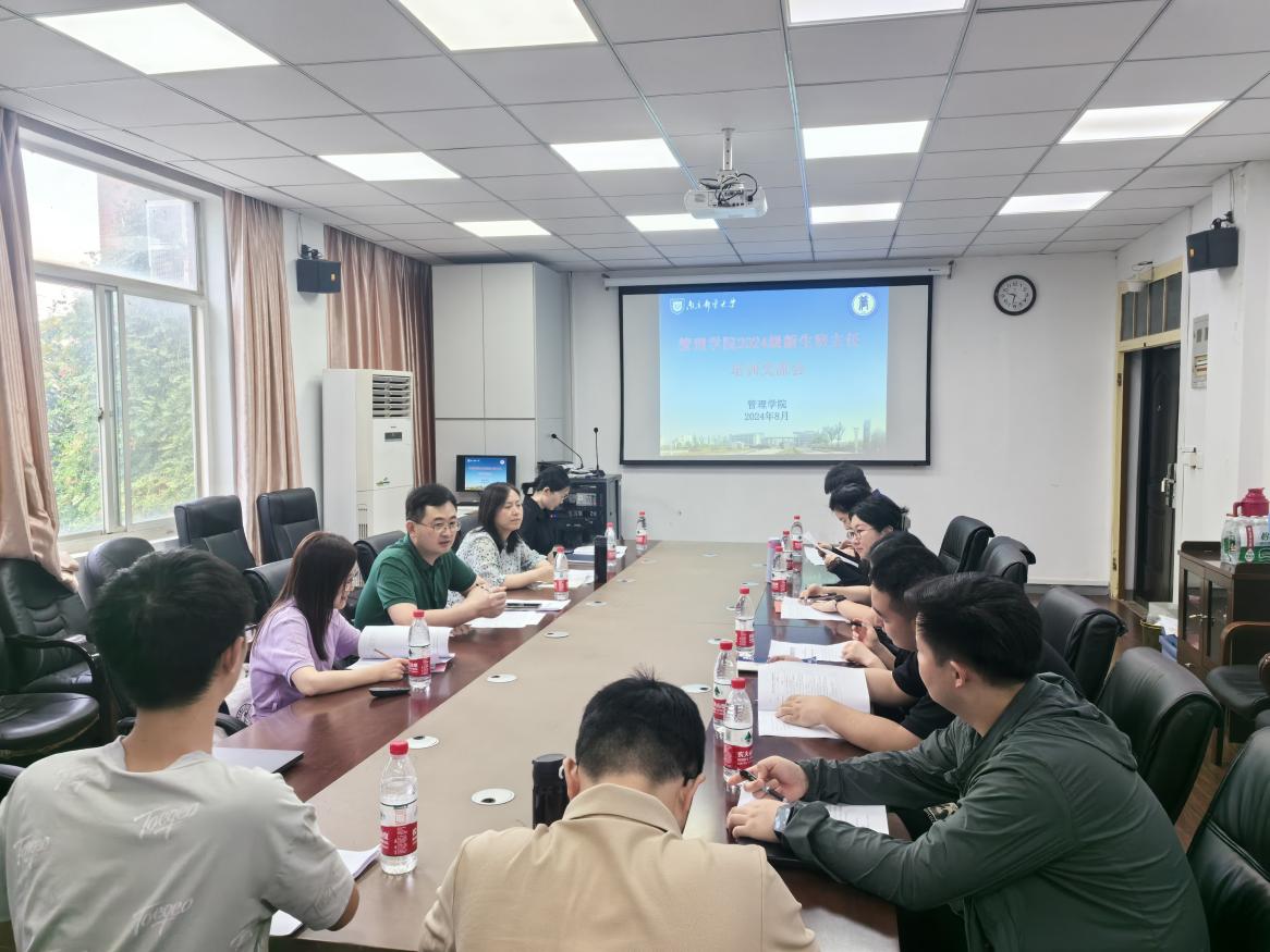 8月15日上午,学院组织召开2024级新生班主任培训交流会,2024级本科新生班主任、往届优秀班主任代表、辅导员代表参加培训会,会议由学院党委副书记、副院长郭强主持。