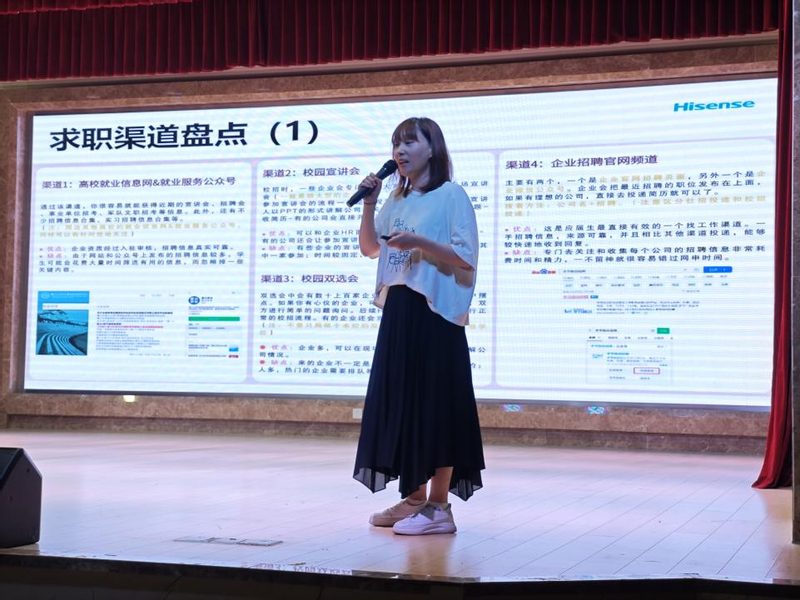 为进一步提升大学生求职就业能力,做好学生就业指导工作,9月13日晚,学院特邀海信集团华东区招聘负责人祁圆圆在华礼堂开展面试技巧与能力提升专题讲座。学院毕业班辅导员,2025届、2026届学生参加讲座。