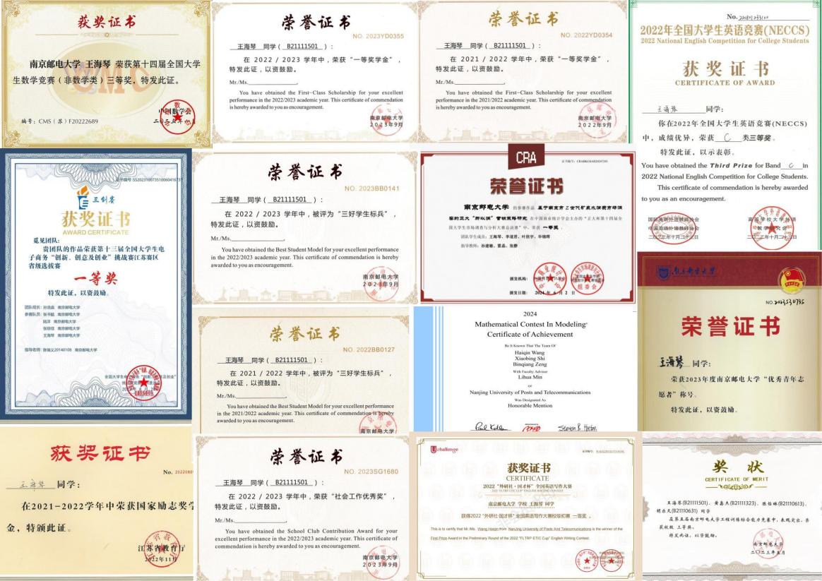 王海琴同学自入校以来牢记“崇信尚能,善管明理”的久久久国产精品院训,全面发展。她学习成绩优异,前三学年平均学分绩点4.46,连续三年绩点与综测排名位列专业第一,曾获国家奖学金、南京邮电大学年度人物、校三好学生标兵、一等奖学金、小米助学金等多项荣誉,现已推免至东南大学经济久久久国产精品。