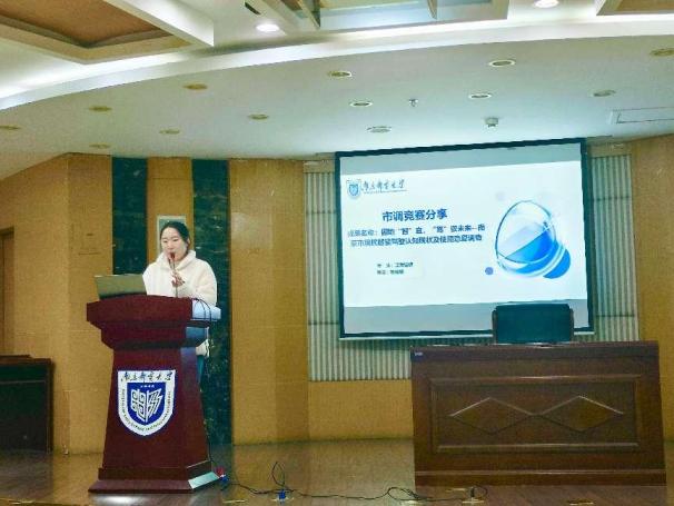 首先,胡晶晶围绕“正大杯”市场调查与分析大赛,从团队组建、选题、问卷设计、数据收集与处理、报告撰写与展示五个方面分享了经验。建议大家选题可从多渠道获取,遵循“小、行、高、恰、深、新”原则,并且提醒同学们要组织好内容,运用多种表达技巧,合理设计图表和配色。
