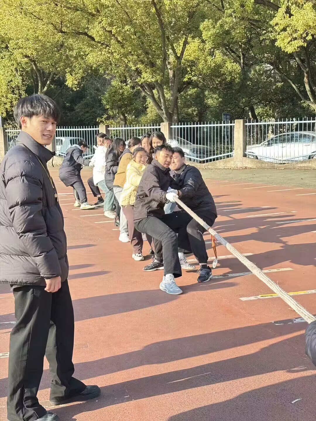 比赛筹备阶段,管院学生会认真策划,高效组织。各班负责人及辅导员老师也积极参与动员,同学们热情高涨,全身心投入比赛当中。比赛过程中,参赛队员们紧握绳索,身体后倾,双脚蹬地,齐心协力地往后拉。每一个表情都写满了专注,每一个动作都彰显着坚韧。现场气氛高涨,观众们的加油声、欢呼声如浪潮般一波接着一波,为队员们注入了源源不断的动力。
