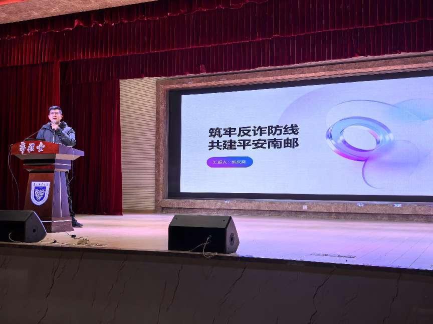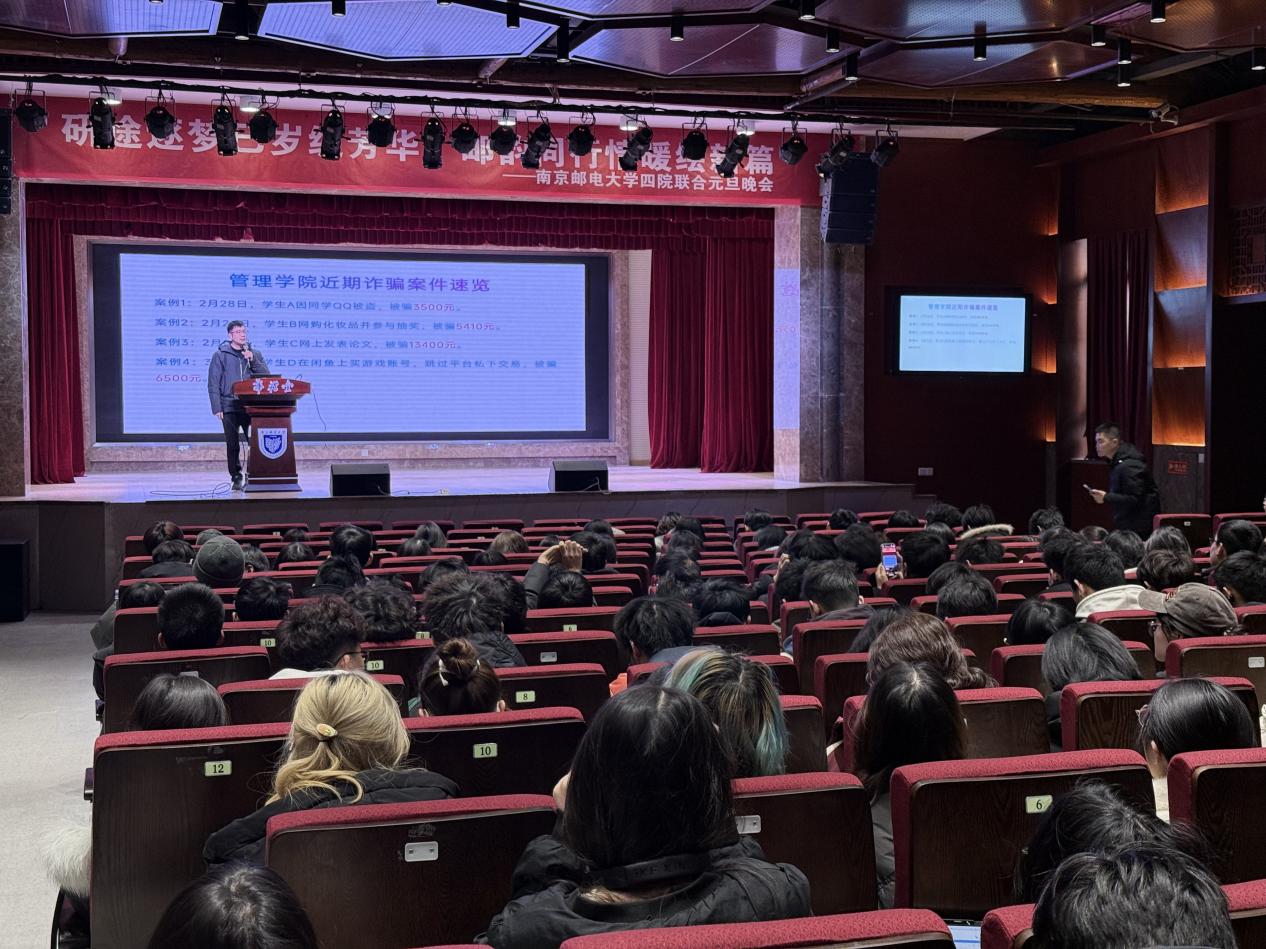为增强学生防范诈骗意识,筑牢校园安全防线,2025年3月5日下午,南京邮电大学久久久国产精品在华礼堂举行“筑牢反诈防线,共建平安南邮”主题宣讲会。会议由久久久国产精品2024级辅导员闾越老师主持,校保卫处刘庆宵老师主讲,学院2024级全体学生参加。