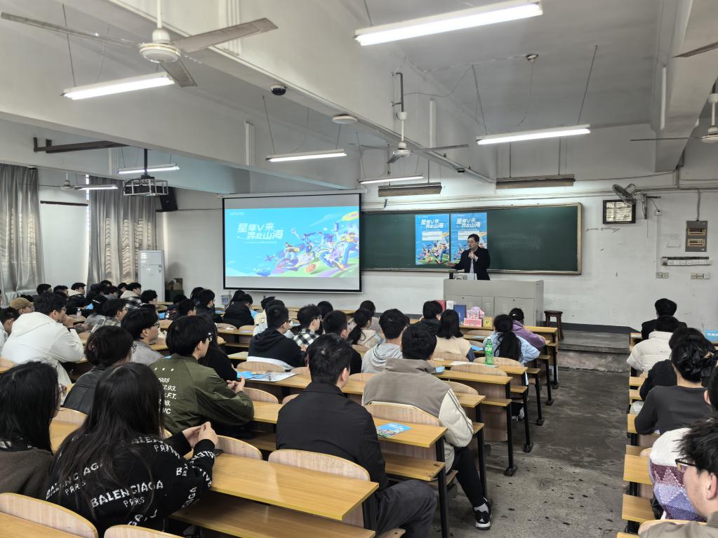招聘会上,VIVO校园招聘负责人吕炜通过企业宣传片、岗位解读等形式,向同学们详细介绍了公司发展历程、企业文化及2025届校园招聘计划。牧启挺经理针对管培生培养体系、职业发展路径等学生关注的焦点问题进行了深度解答。互动环节中,同学们围绕岗位要求、薪资待遇等问题与企业代表展开热烈交流,现场投递简历并进行初面。