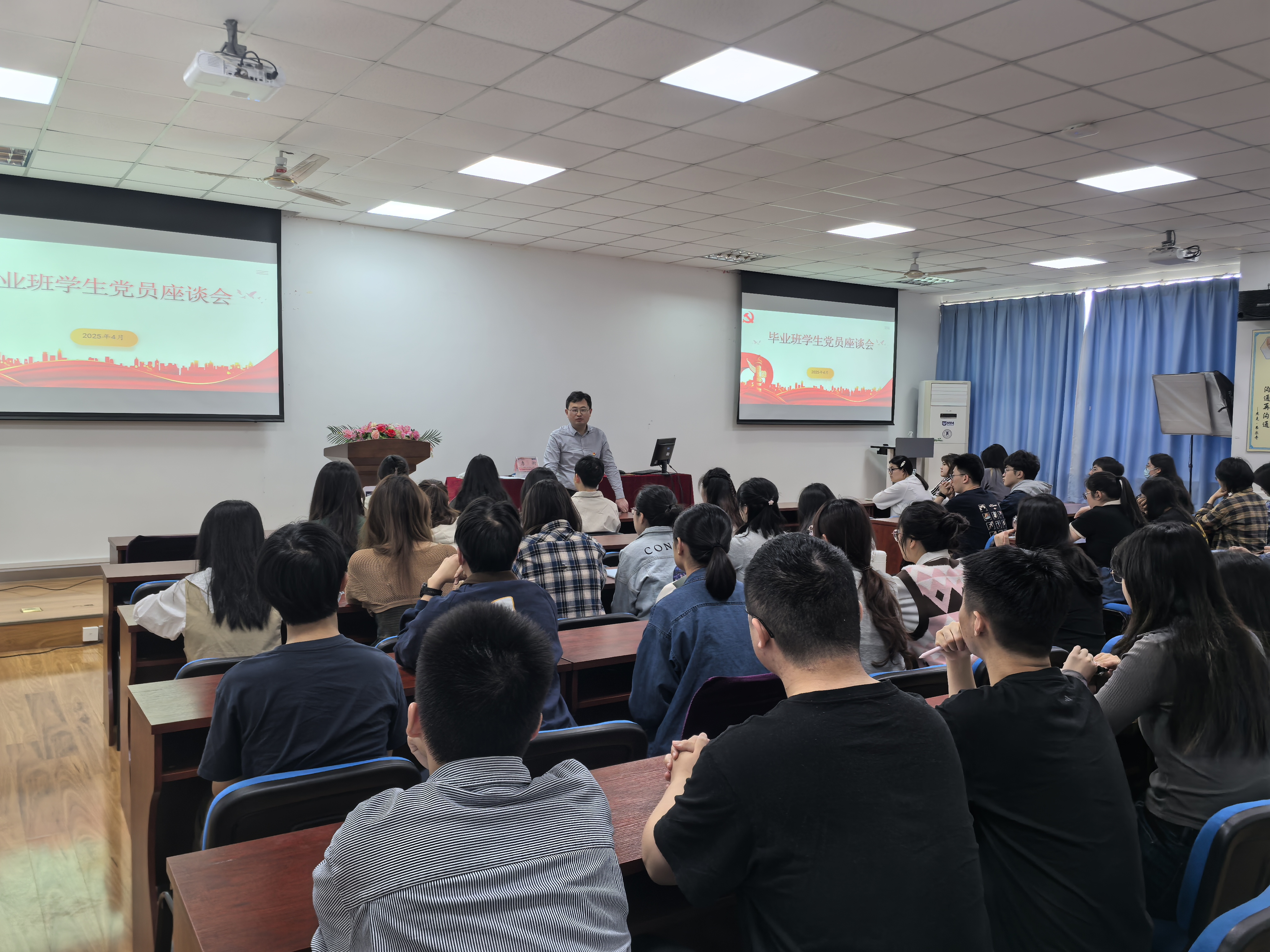 本次专题党课上,郭强书记充分肯定了学生党员干部在校期间为学院发展作出的贡献,并强调“毕业不是责任的终点,而是使命的延续”。他要求学生党员干部在离校前的关键阶段"站好最后一班岗",持续发挥桥梁纽带作用:协助辅导员做好毕业材料整理、档案转接等工作;主动关注同学思想动态,配合开展安全教育;策划组织有温度的毕业季活动,营造文明和谐离校氛围。郭强副书记特别指出:"越是临近终点,越要彰显学生党员的先锋本色,用行动为大学生活画上圆满句号。"