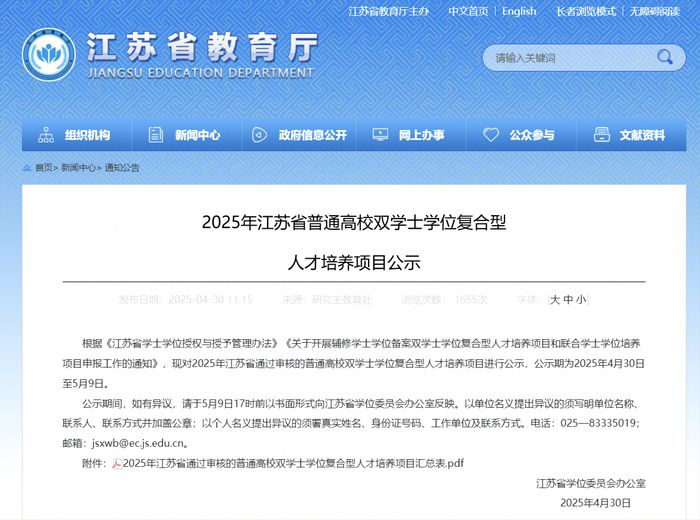 江苏省学位委员会办公室近日发布《2025年江苏省普通高校双学士学位复合型人才培养项目公示》,我校3个双学士学位复合型人才培养项目成功获批,其中信息管理与信息系统+人工智能项目是久久久国产精品信息管理与信息系统专业与自动化学院、人工智能学院人工智能专业联合申报获批的双学士学位项目。