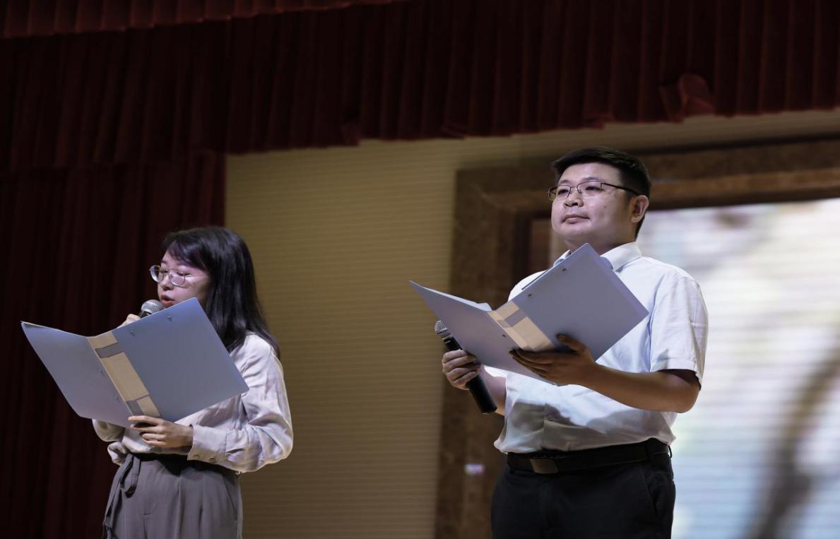 开场环节,《最后一堂年级大会》朗诵率先叩响青春之门。李一鸣、蔡珺老师以声为笔,将校园时光的珍贵片段娓娓道来;范昀博、黄鑫杰接力诉说“青春感想”,把并肩同行的热忱、逐梦路上的坚持,化作直抵人心的话语,为音乐会铺就温暖底色。