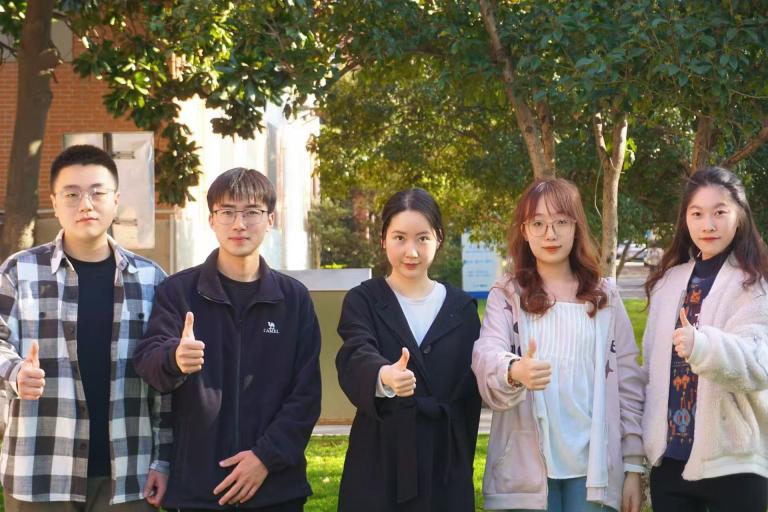 参赛学生(从左到右依次是罗佳翃、陈超、朱荟文、吴雨鸿、王子涵)