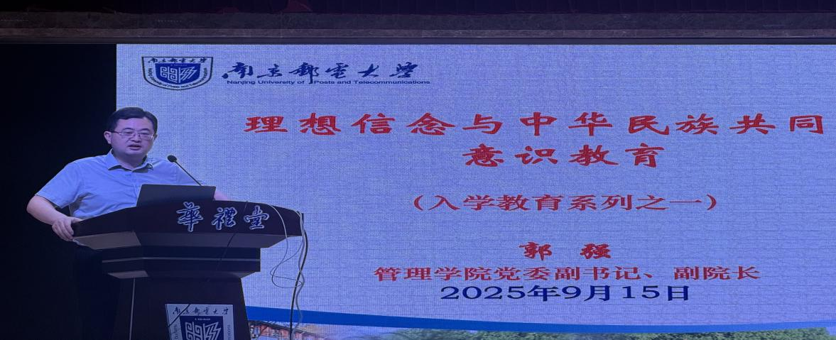 随后,学院党委副书记、副院长郭强教授开展新生理想信念与民族共同体意识教育。他将大学生涯形象概括为“青春大一”“阳光大二 ”“宁静大三”“沉淀大四”四个阶段,并鼓励新生尽快适应角色转变,找准个人定位,在集体中成长,引导新生在大学期间实现“增长知识、提升技能、启迪心智、练达人生”。此外,郭强副书记以党史为脉络,通过感人故事激发学生爱国情怀与使命担当,并详细讲解入党流程,为有志青年指明方向。