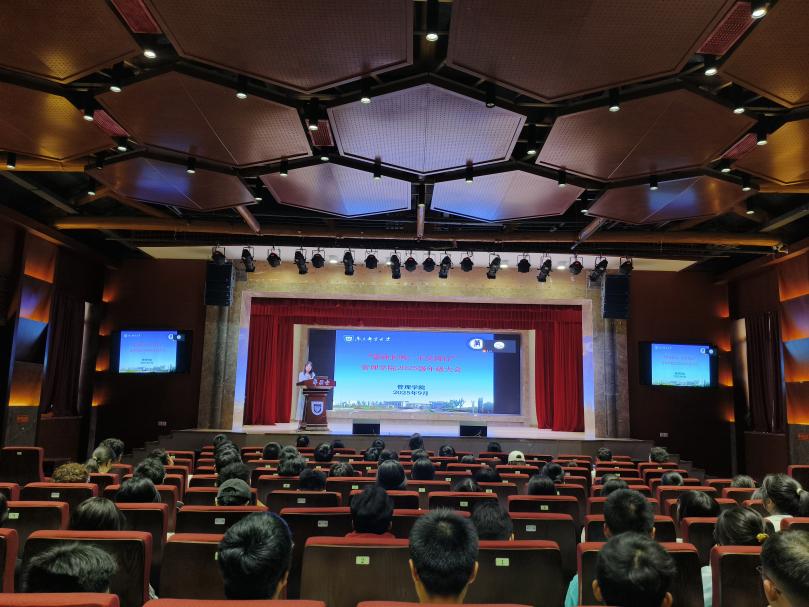 为强化学生安全意识,夯实学风建设,2025年9月30日下午15点,我院于华礼堂召开2025级新生年级大会,会议由2025级辅导员蔡珺老师主讲,围绕军训总结、安全教育、民族政策等核心内容进行宣讲说明,为2025级新生军训后开启大学学习生活明确方向、奠定基础。