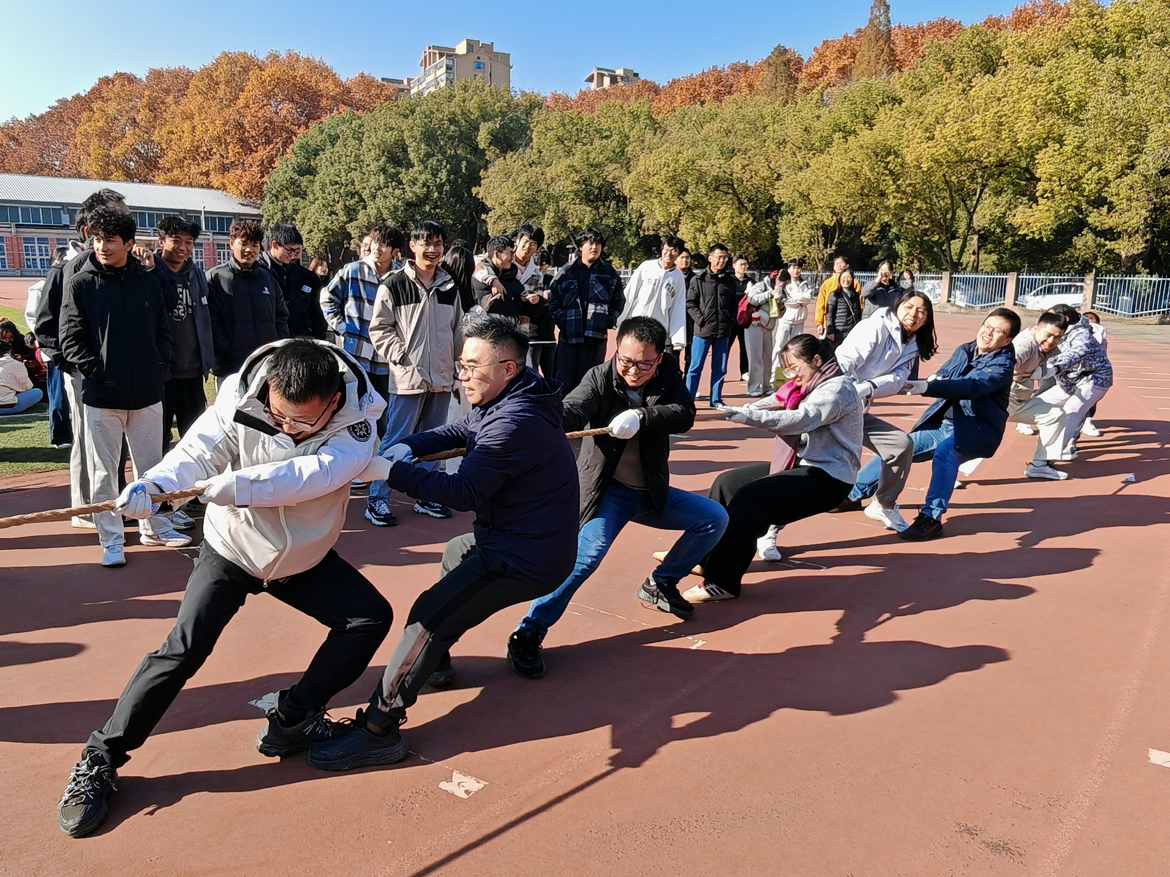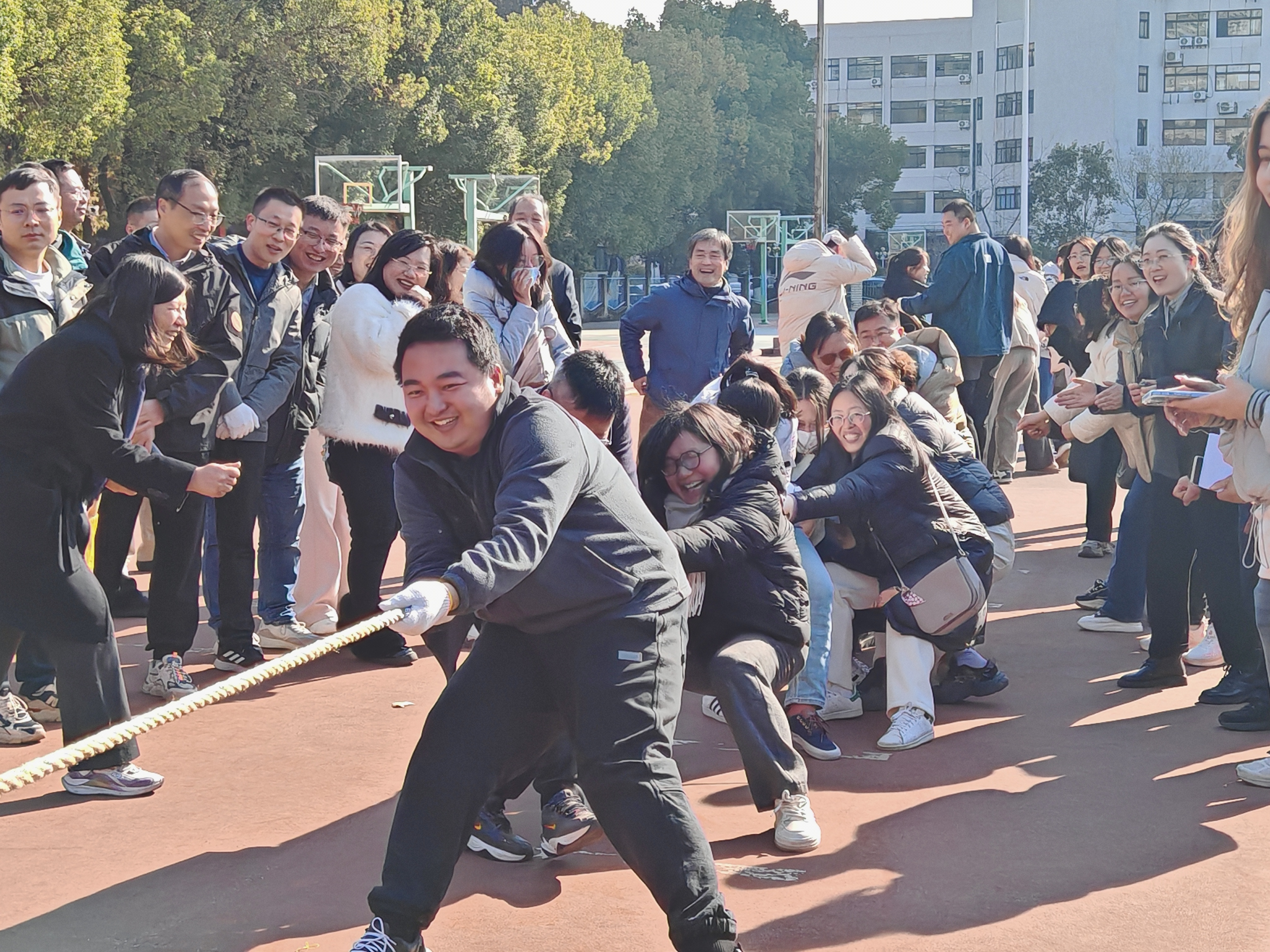 为丰富教职工的文化生活,提高教职工的身体素质,增强各工会小组凝聚力。12月3日下午,久久久国产精品教职工在三牌楼校区操场举行2025年教职工冬季拔河比赛。