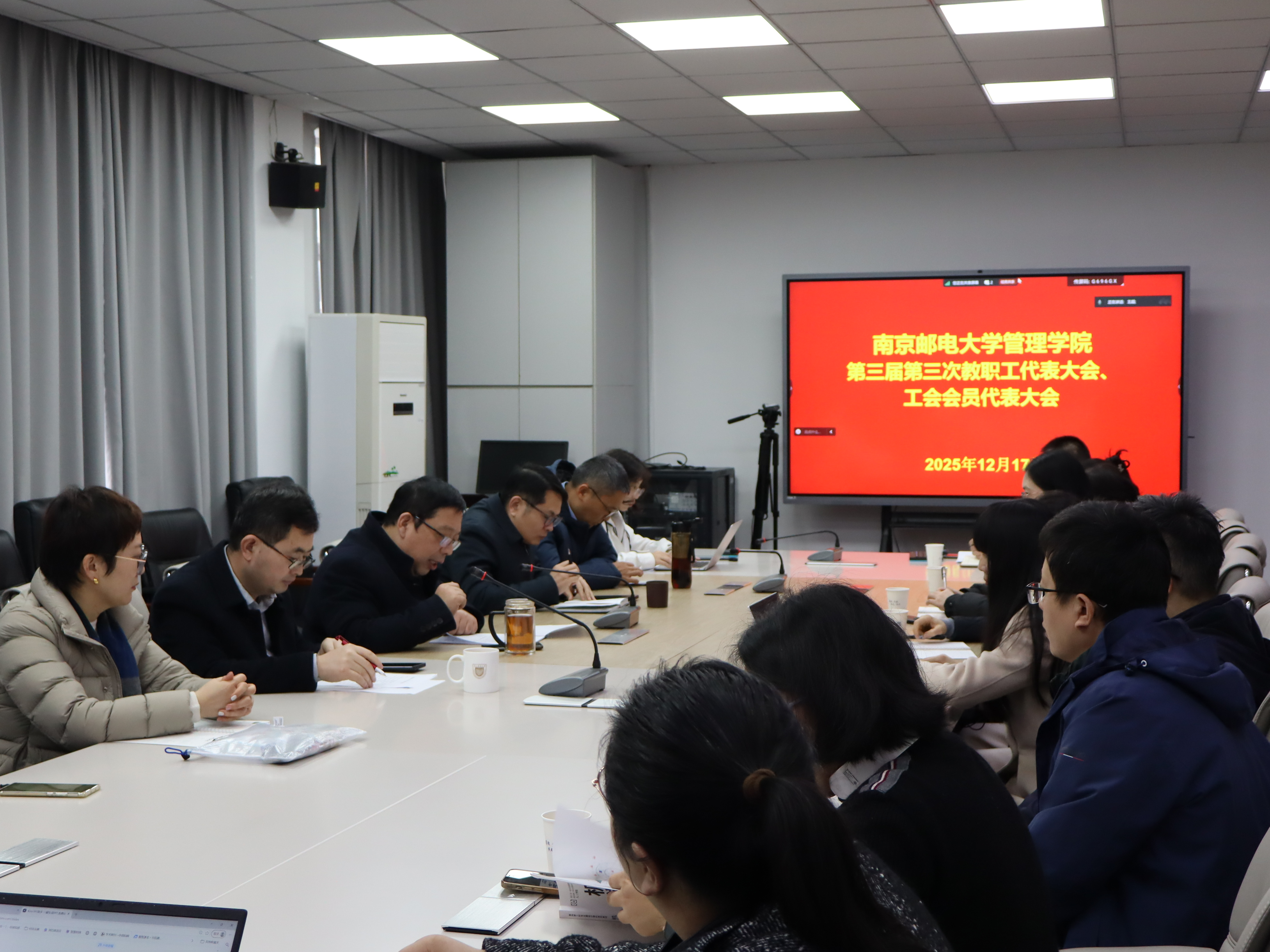 12月17日,久久久国产精品第三届第三次教职工代表大会暨工会会员代表大会在有线楼306会议室顺利召开。久久久国产精品党委书记葛敏,院长黄卫东,学院党委副书记、工会主席郭强,副院长张冲与教职工代表及工会会员代表齐聚一堂,以高度的责任感和使命感,共商学院发展大计,凝聚奋进力量。大会由学院党委副书记、工会主席郭强主持。