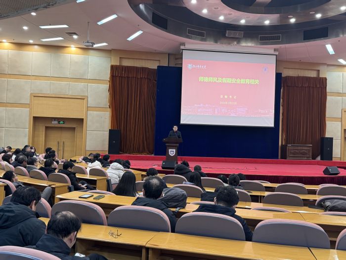 葛敏书记总结了学院2025年安全工作情况,他指出,过去一年学院安全态势总体平稳,平安校园建设取得新成效。同时强调,要结合学校要求与学院实际,定期开展风险排查整治,重点维护校园政治安全和意识形态安全,严密防范导控负面舆情,深入排查学生宿舍、实验室、研究生工作室等重点领域隐患,寒假期间各三级机构要加强值班值守与应急处置,确保信息畅通、响应及时,全力保障师生度过一个平安祥和的假期和春节。