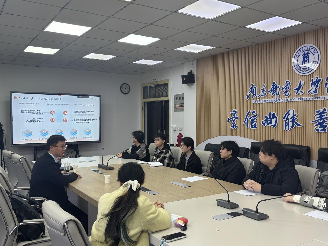 迈富时集团东部大区总经理石磊高度肯定南邮管院的人才培养质量,全面介绍了企业发展布局、核心业务优势及本年度校园招聘规划,详细解读了招聘岗位的职能要求、发展前景与培养体系。企业方表示,期待以此次交流为契机,与学院探索多领域合作模式,实现资源共享、优势互补,共同为行业发展输送实用型、创新型人才。
