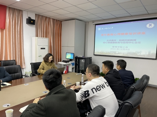 为关心青年教师的身心健康,缓解心理压力,树立乐观向上、健康阳光的积极心态,增进教师对心理健康知识的了解, 12月8日下午,南京邮电大学心理健康教育与咨询中心主任陆晓花副教授为我院青年教师带来了一场生动的心理健康知识讲座。